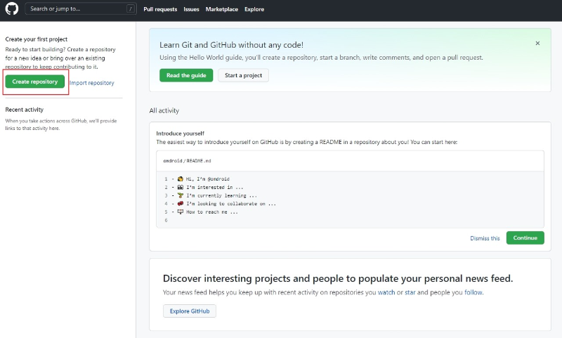 여기 “Create repository”를 클릭하세요!