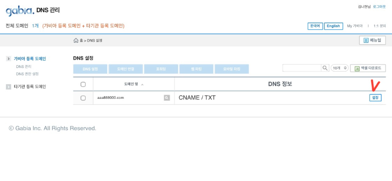 그러고 나서 2차 도메인을 만든 “가비아” 로 갑니다..!