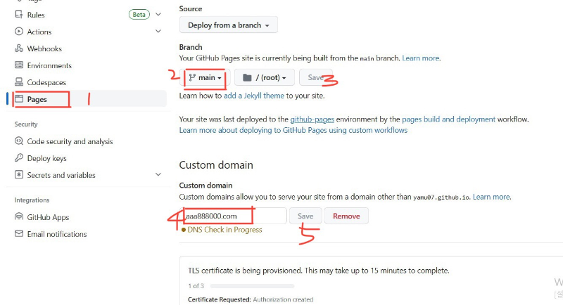 4. 밑에 “custom domain" 쓸 수 있는 공간이