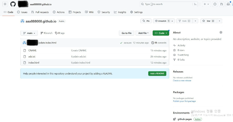1. "pages" 클릭하면 지금 화면이 나오는데,