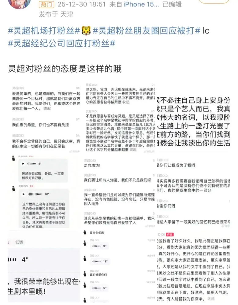 또한 팬들은 과거 가수 령초가 팬들과의 소통방에서 남긴 다정한 고백들을 캡처해서 공유했다고 해요.