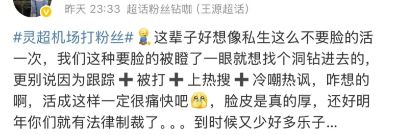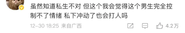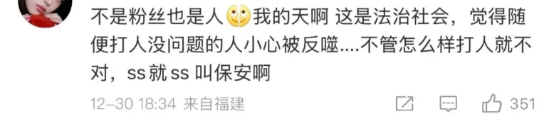 그럼에도 불구하고, 대다수의 네티즌들은 여전히 "사생팬이라고 해도 직접 때리는 건 안된다", "공인은 손을 써서는 안 된다", "법치 사회에서 누구든 함부로 폭력을 쓰는 건 명백히 잘못"이라는 입장을 고수했다고 하죠.