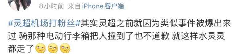 다시 캐리어에 올라탄 후 사람과 부딪혔음에도 불국하고 멈춰 서서 사과하지 않고 그대로 자리를 떠났고, 이 일로 인해서 대중들의 뇌리에는 '성격이 나쁘다'는 낙인 깊게 새겨졌다고 해요..;