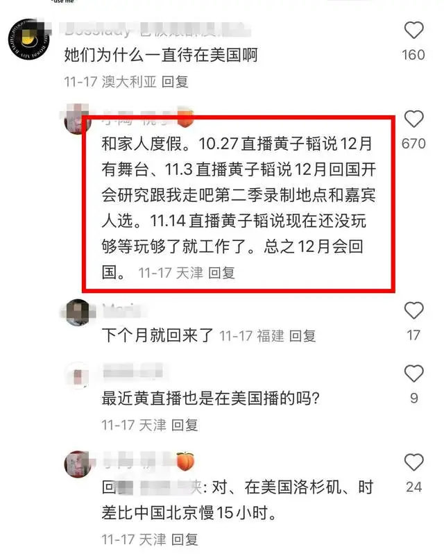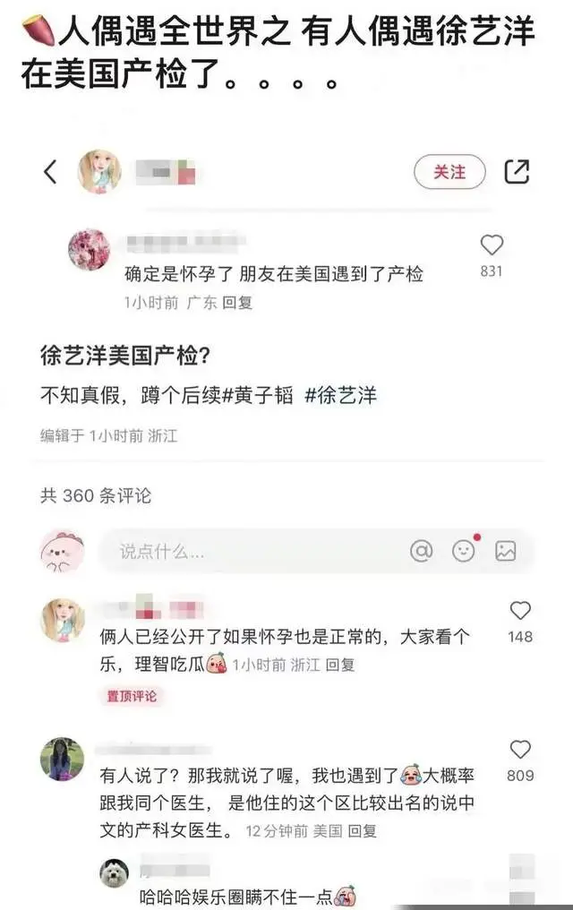 이후에는 가수 황쯔타오와 양측 어머니가 몇 달간 로스앤젤레스에서 머무는 모습이 포착되었으며, 그 분위기를 봐서는 단순 여행을 즐기러 온 것이라기보다는 출산 준비를 위한 체류도 보였다고 해요.