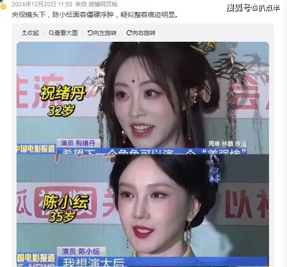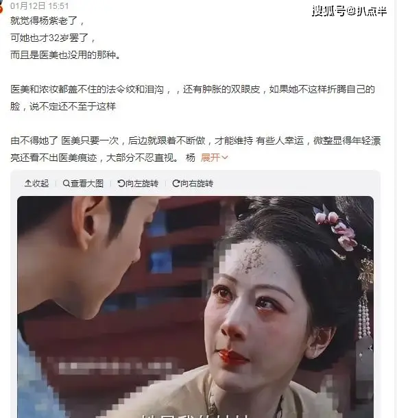 배우"양쯔", 최근 공개된 사진에서 얼굴에 이물감이..이는 그녀가 선배 배우 "송단단" 평가에 갇