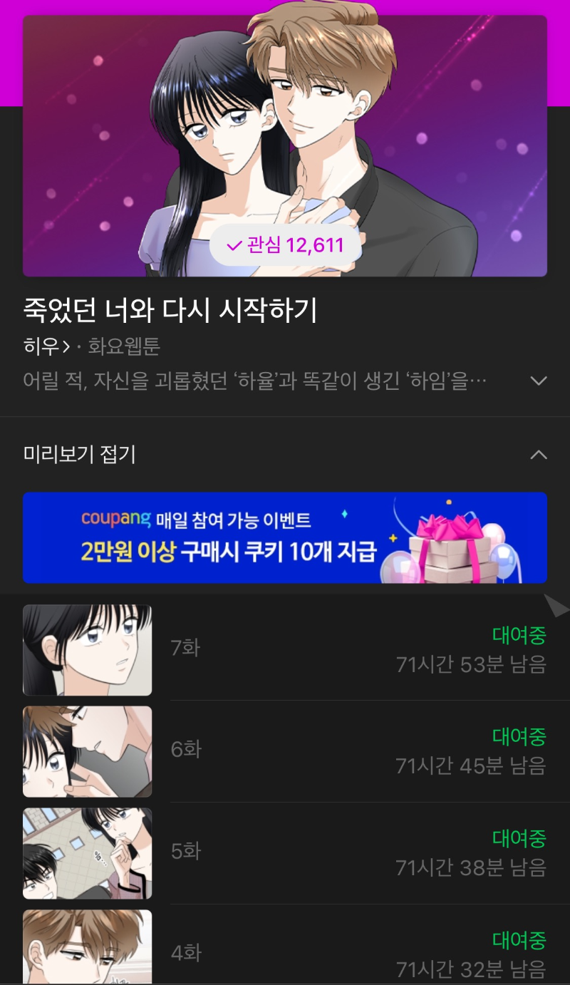 아직 무료 웹툰으로는 2회밖에 안 나왔고, 유료까지는 7화까지 나온 상태이고요.