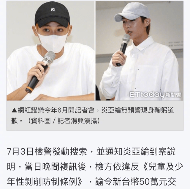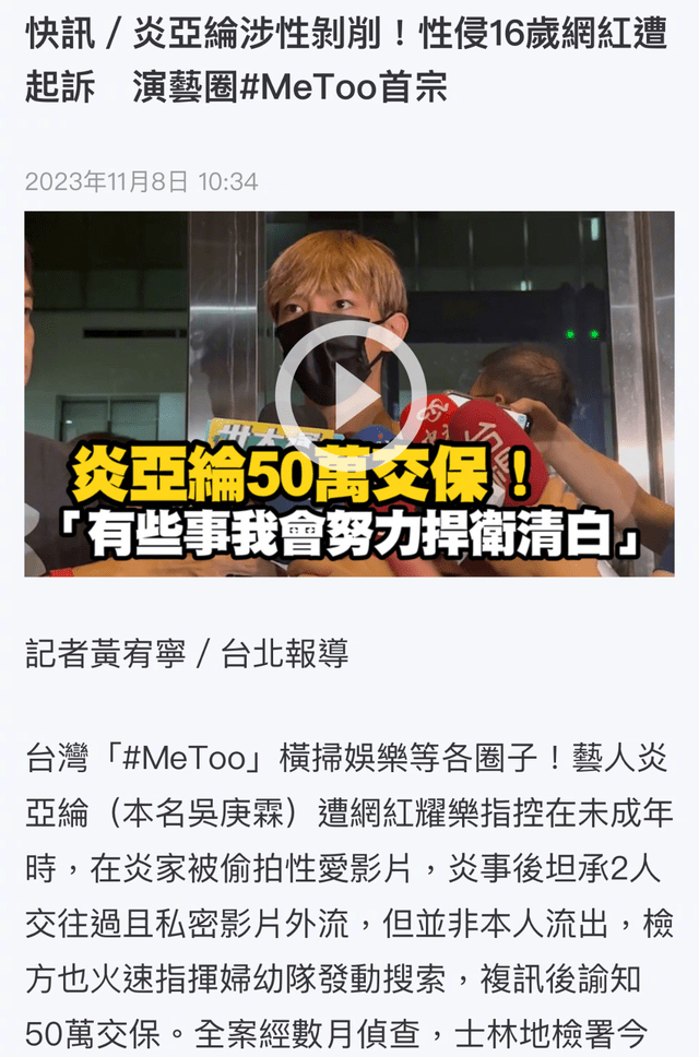 성착취 혐의를 받아서 법에 따라서 대만 스린 지방 검찰청에 기소되어 출국 금지를 받게 되었는데요.