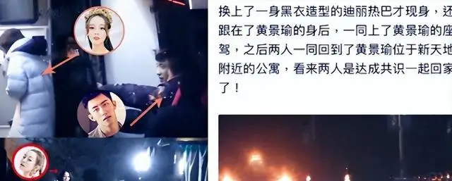 한 번은 황징위 배우가 디리러바 배우 차 안에서 40분 넘게 머물렀었는데, 나중에 차에서 나왔을 때 두 사람 모두 옷을 새로 갈아입고 있었다고 하죠.