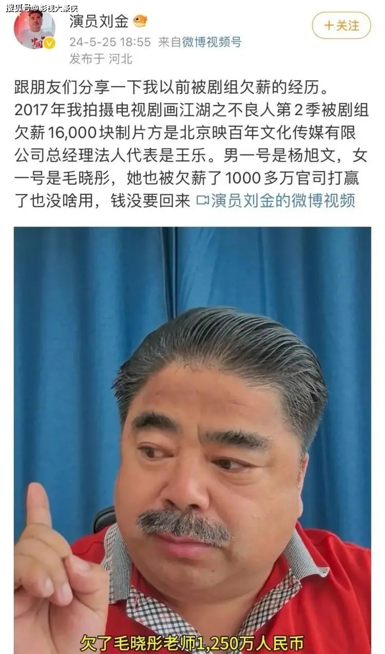이 소식은 영화 《하락특번뇌: 굿바이 미스터 루저 夏洛特烦恼》 작품에서 조연을 출연했던 류진 배우가 자신의 웨이보에 2017년 크랭크인을 한 《화강호지불량인 2 画江湖之不良人2》작품 촬영에 참여했지만 제작진들로부터 16000위안의 출연료를 아직까지 받지 못했다고 말하며 출연료 미지급된 배우가 자신뿐만 아니었다고 했다며 글을 올렸다고 하는데요.