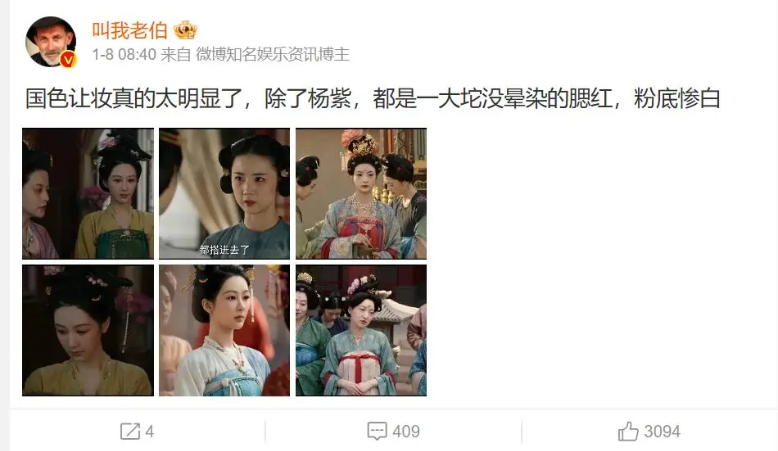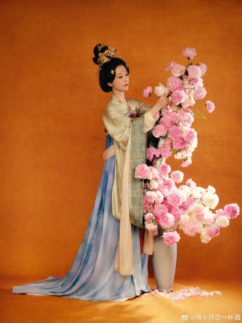 새 드라마 《국색방화 国色芳华》 작품에서 다른 여자 배우들의 메이크업과 스타일은 당나라 시대의 풍습을 따르며 얼굴은 동글동글 통통하며 두꺼운 파운데이션을 바르는 반면에, 양쯔 배우만 비교적 자연스러운 메이크업을 유지하고 있거든요.