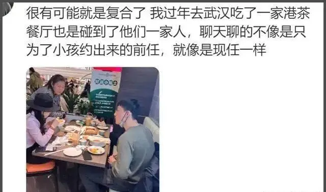 슈퍼마켓에서 함께 있는 모습 외에도, 우한의 한 네티즌의 폭로에 따르면 올해 춘절에는 두 사람이 아이와 함께 차찬팅(홍콩식 레스토랑)에서 아이와 함께 함께 밥을 먹는 모습을 봤다고 했는데요.