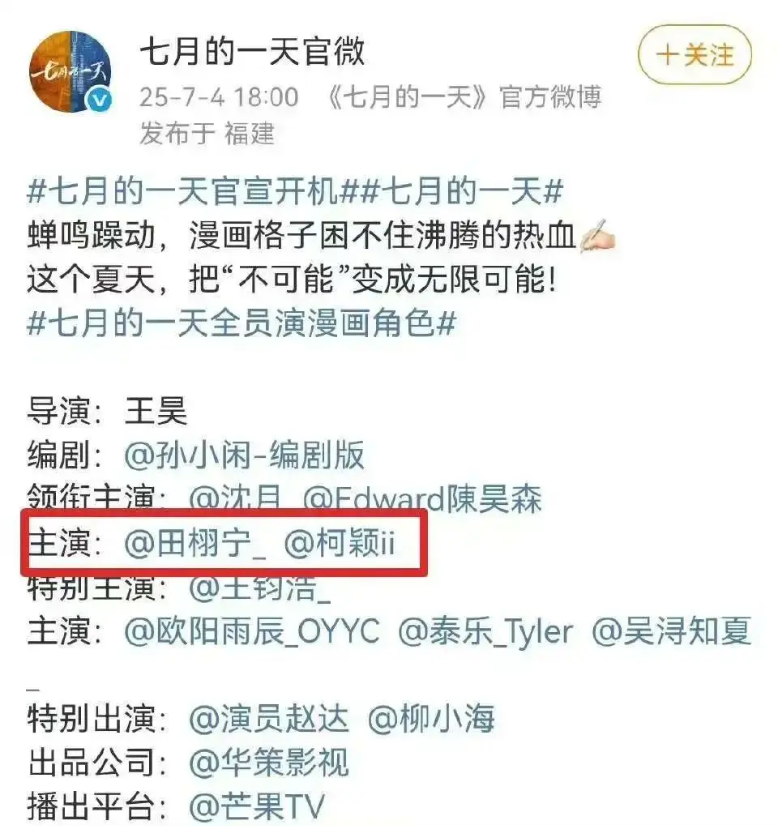 전허녕 배우는 이미 명품 브랜드와 접촉하기 시작했고, 새 드라마 《칠월적일천 七月的一天》 작품도 조용히 '격상'된 분위기가 하더라고요.
