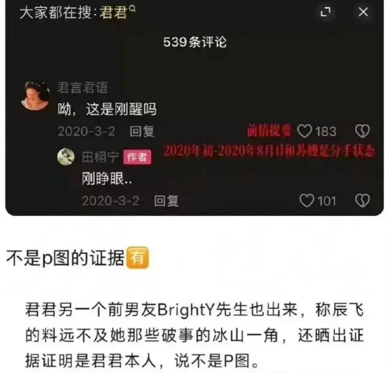일부 네티즌들은 전허녕 배우가 2016년부터 2021 사이에 "쑤쑤 苏苏"라는 여성과 교제를 했으며, 중간에 한 차례 헤어졌다가 다시 만났었다고 폭로를 했는데요~!