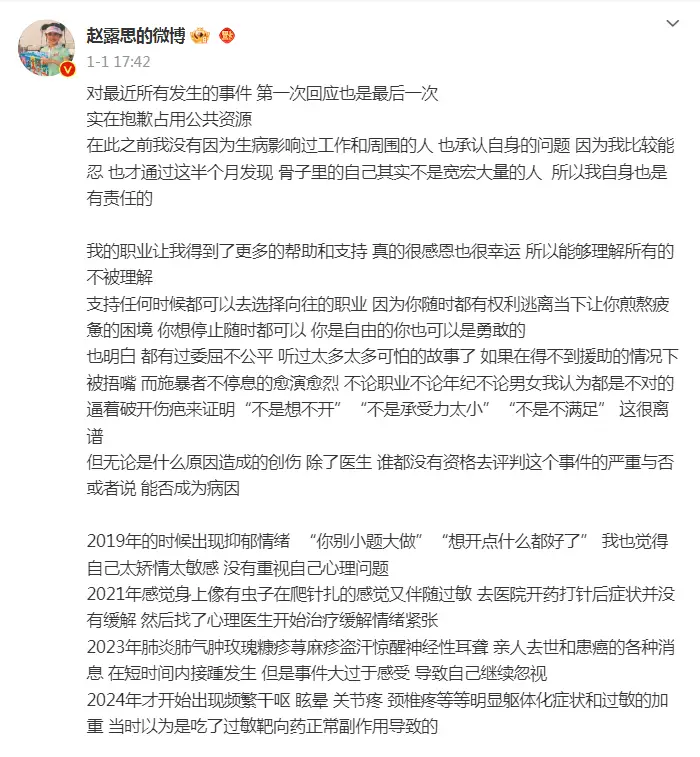 논란이 계속되자 조로사 배우는 더 이상 참을 수가 없었고 춘절 당일 다시 한번 장문의 글을 통해 해명을 했죠.