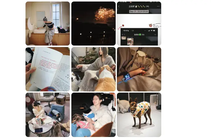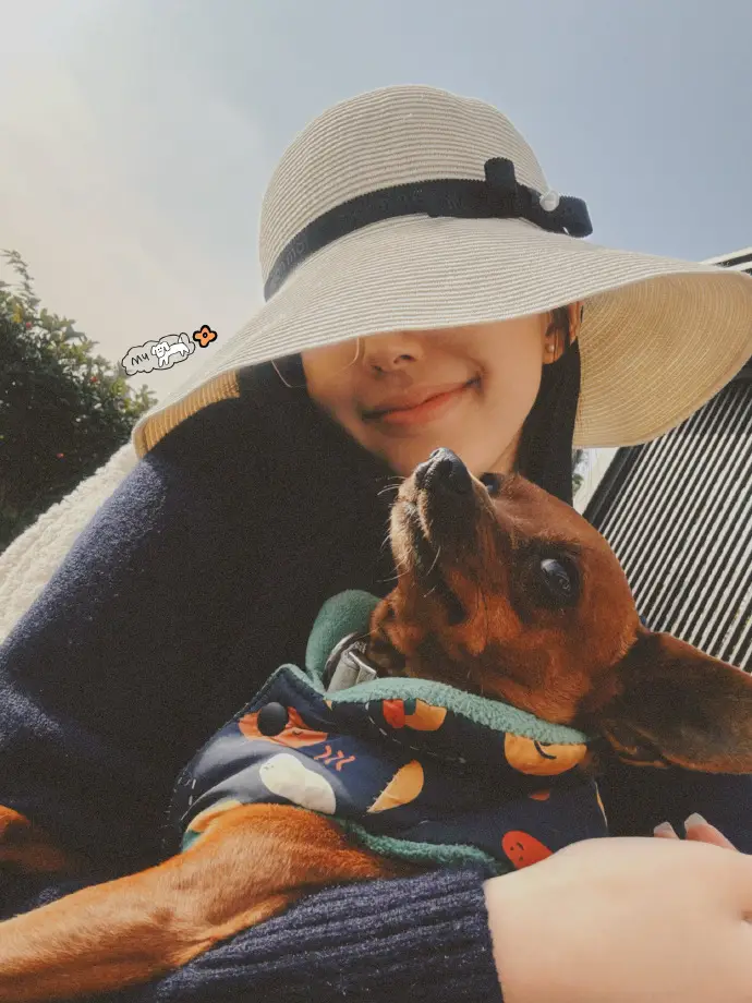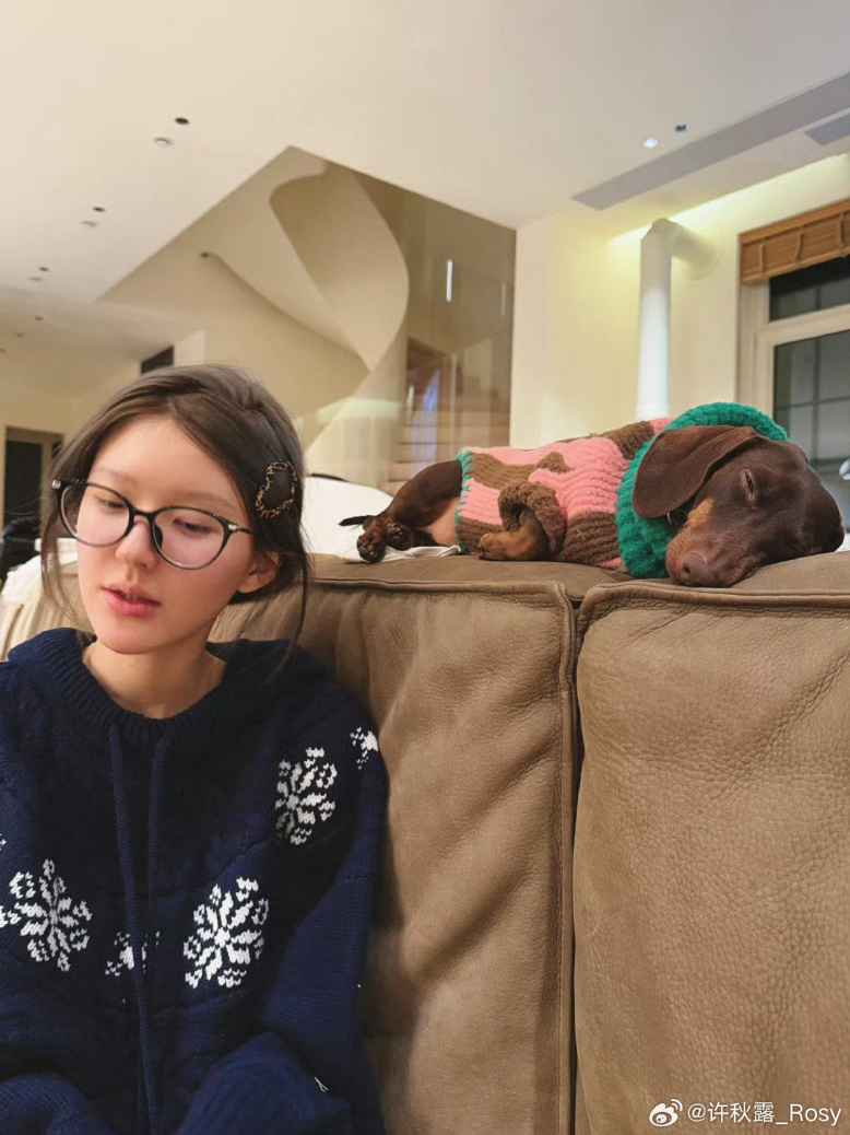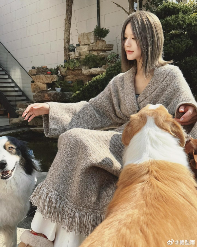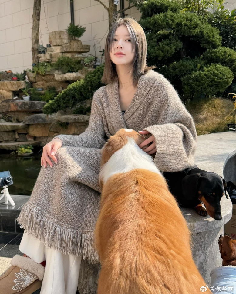 그녀 옆에는 두 마리의 작은 강아지가 있었는데, 한 마리는 녹색과 흰색 줄무늬 스웨터를 입고 파란색 스카프를 두르고 있으며 둘 다 매우 얌전하고 순종적이어서 전체적인 화면이 매우 따뜻하고 힐링하는 느낌을 주었죠.