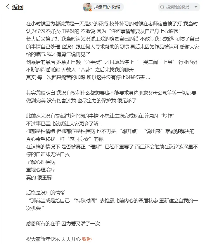 논란이 계속되자 조로사 배우는 더 이상 참을 수가 없었고 춘절 당일 다시 한번 장문의 글을 통해 해명을 했죠.
