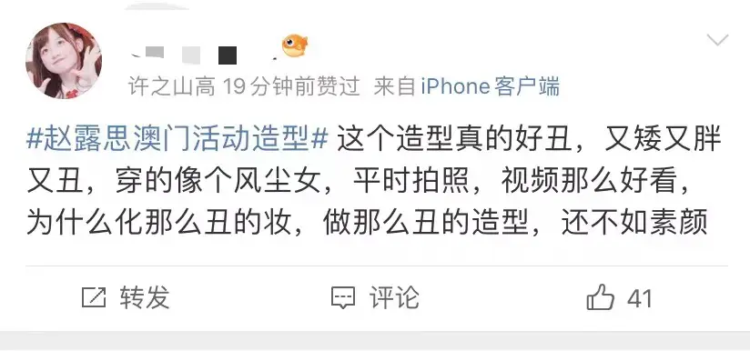 네티즌들은 그녀의 메이크업 전체가 매우 촌스럽고 엉뚱하다고 생각했고, 그녀의 팬이 올린 사진들은 모두 고도로 포토샵 기술로 편집한 사진이라고 한 거죠.