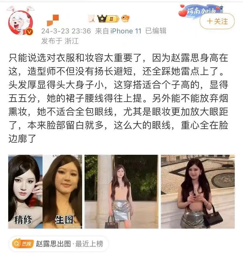 네티즌들은 이번 스타일링이 실패한 이유가 메이크업이 문제가 아니라 하드웨어 문제라고 생각했는데, 그녀의 큰.. 얼굴, 아담한 체형, 짧은.. 다리..로 인해 전체적인 패션 스타일링이 실패했다는 얘기였죠. (제 의견이 아니라 중국 뉴스 기사 정보들에서 발췌한 내용임을 다시 한번 강조드리겠습니다..;;)