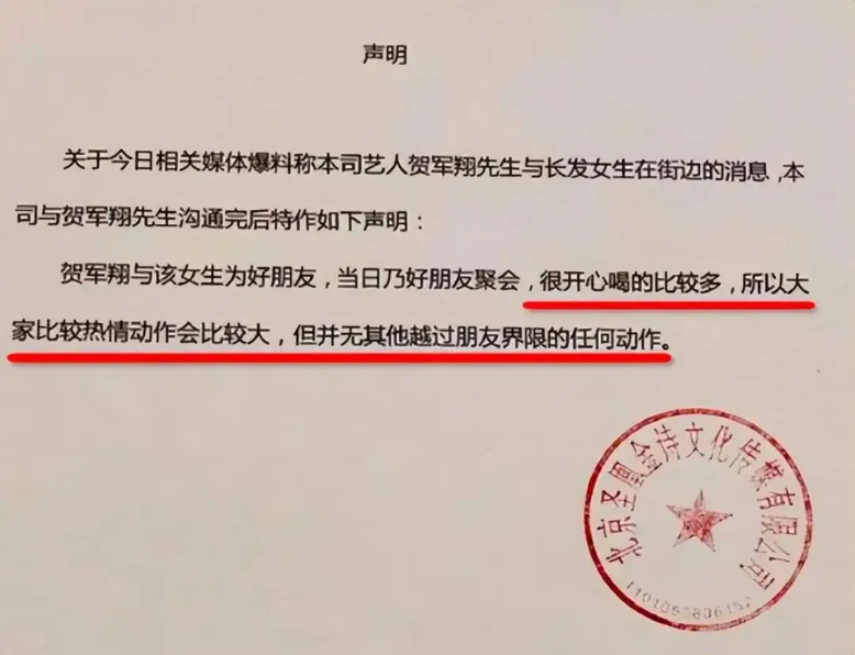 이러한 애매모호한 행동은 하군상 배우가 바람을 피웠다는 사실을 확인시켜 주는 격이었지만 하군상 배우는 뜻밖에 그 여자와 절친한 친구 사이일 뿐이라고 글을 남겼고, 그날 술을 많이 마셨기 때문에 비교적 열정적인 제스처를 취했지만 두 사람은 친구의 경계를 넘지는 않았다고 했다네요..;;
