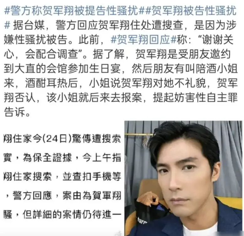 지난 5월 24일, 대만 언론은 하군상 배우의 타이베이에 있는 자택에서 경찰이 수색 작업을 벌였다고 하는데요.
