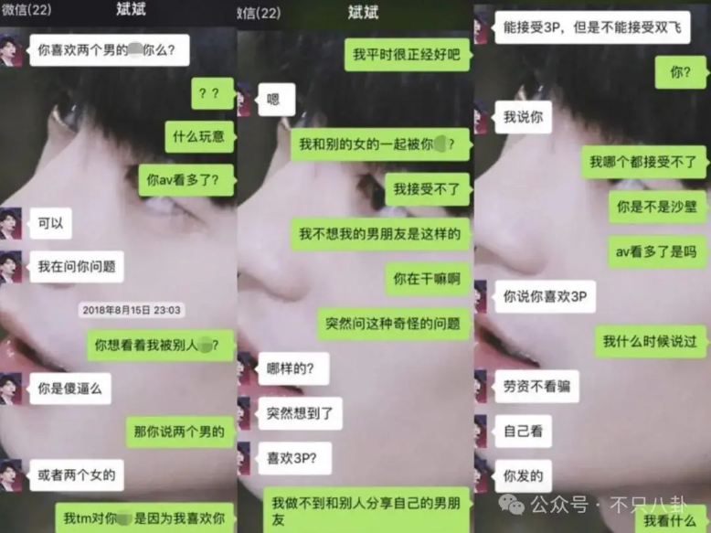 그는 교재 중에 여자친구에게 쓰리섬을 제안하는 채팅 기록도 노출이 되었었는데요.;;
