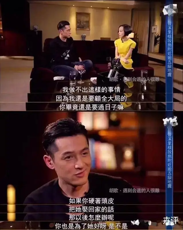 이 관계에 대해서 호가 배우는 프로그램 녹화 중에 "두 사람이 함께 하는 것에 대해서는 각자 자기 일 뿐만 아니라 부모님의 일이기도 하다. 만약 내가 염치 불고하고 그녀와 결혼하겠다고 고집을 한다면 앞으로의 생활을 어떻게 해야 할지.. 그녀를 위한 선택을 하는 게 좋을 것 같았다" 호가 배우는 설가응 배우을 사랑하지 않은 게 아니라 더 이상 사랑할 수 없기 때문이라는 것을 알 수 있었어요.