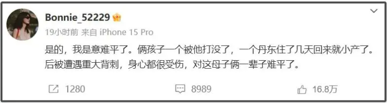 정리하자면, 확실히 황징위 배우의 전처가 전 남편을 비난하는 것은 이해할 수 있어요.