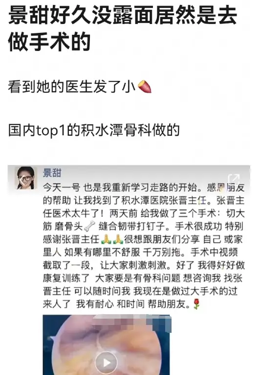 경첨 배우가 어떤 수술을 받았던 건지에 대한 구체적인 내용은 영상 속에서는 언급되지 않았었지만, 경첨 배우의 주치의가 경첨 배우의 지인들에게 위챗 모멘트를 통해 공개한 게시글을 통해서 수술에 대한 자세한 정보를 알 수 있었다고 해요.
