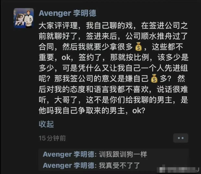 또한 이명덕 배우와 3개월 동안 함께 일을 해왔던 소속사 "허송 和颂(리빙빙 자매가 운영)" 역시 지난해 12월 이명덕 배우와의 계약을 조기에 해지했으며, 양측은 어떠한 금전적인 합의도 하지 않았다고 하더라고요.