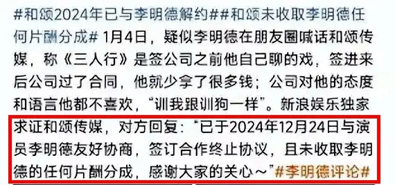 또한 이명덕 배우와 3개월 동안 함께 일을 해왔던 소속사 "허송 和颂(리빙빙 자매가 운영)" 역시 지난해 12월 이명덕 배우와의 계약을 조기에 해지했으며, 양측은 어떠한 금전적인 합의도 하지 않았다고 하더라고요.