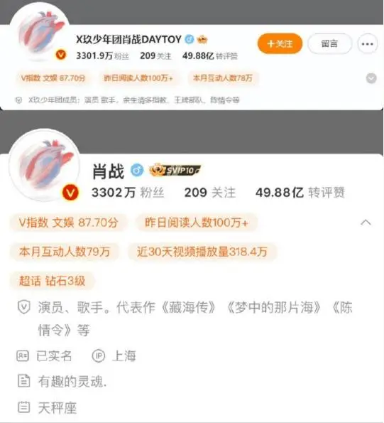 샤오잔 배우의 웨이보 계정명이 변경되었고, 이전에 '호단 糊团'이라는 접두사를 삭제했는데요.