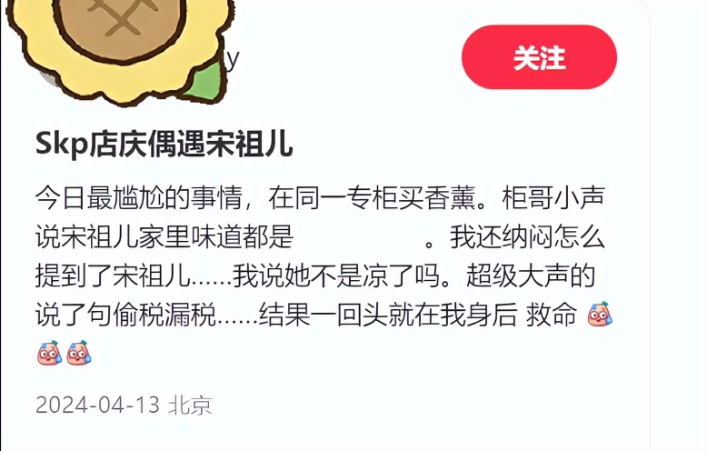 그 블로거는 명품 브랜드 아로마테라피 향초 매장코너에서 쇼핑을 하고 있었는데, 직원이 갑자기 송조아 배우가 어떤 향초를 선호하는지에 대해 언급했고, 블로거는 망설임 없이 바로 송조아 배우가 세금 탈세를 했는데 이미 까먹은 게 아니냐고 큰 소리로 말을 했다는 거죠..;;