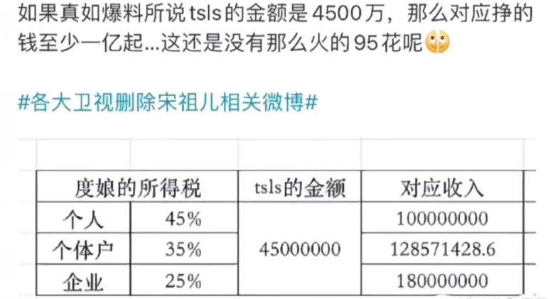 한편 다른 또 반응으로는 세금탈세의혹으로 연예계 일을 현재 못하는 송조아 배우의 생활 수준을 보면 예전 사건사고로 은퇴를 하게 된 유명 연예인들이 정말 많이 벌었었다며 이전 온라인 정보들에 의하면 연예인들은 최소 백만 달러 이상에서 심지어 수천만 달러를 벌고 있다며, 당시 송조아 배우의 수입에 관해서는 최소 1억 위안을 넘게 벌었을 거라는 거죠.