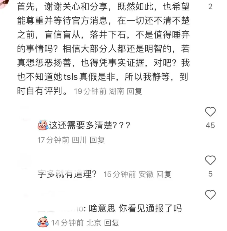 하지만 송조아 배우는 세금 탈세 의혹에 연루가 된 이후 주요 David TV의 댓글 삭제 행위는 해당 뉴스를 전파하는 실제 인터넷상에서의 사실을 기반을 둔 것처럼 보인다며 하며, 게다가 이후 송조아 배우는 철저하게 은신하며 현재 어떤 공식 석상활동도 하지 않고 있으며, 이러한 상황에서 봤을 때 송조아 배우의 침묵은 "침묵은 금이다"가 아니라 무력할 뿐으로 보인다고 하네요.