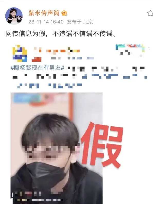 그러나 곧 양쯔 배우 측에서 파파라치의 폭로가 거짓이라며 해명했지만, 해명 과정 속에서 샤오잔 배우와의