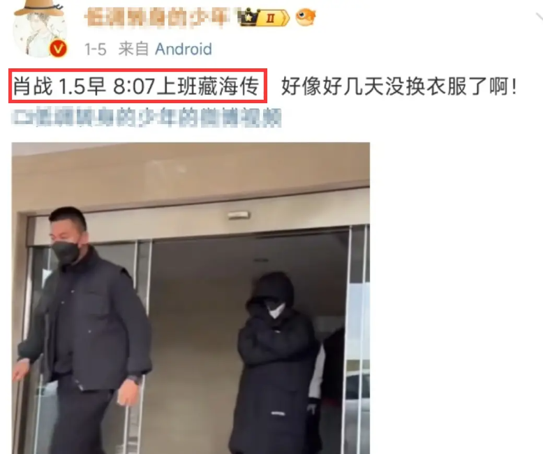 샤오잔 배우는 1월 5일 오전 8시 중드 '장해전'을 촬영하고 오후 8시 10분이 되어서야 촬영을 마시고 호텔로 돌아갔고,