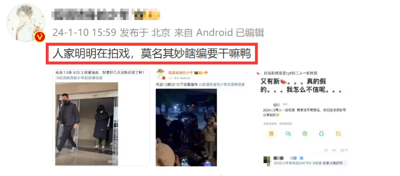 2024년 1월 10일, 양쯔 배우와 샤오잔 배우의 스캔들은 각종 마케팅 계정을 통해 퍼졌고,
