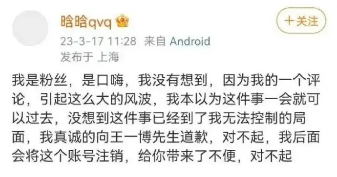 폭로되자마자 곧바로 자신이 왕이보 배우의 팬이라고 말만 하다가 왕이보 배우에게 사과를 했다고 하는데요.