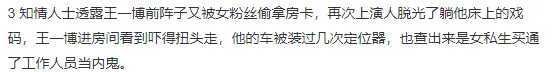 그리고 인터넷에는 왕이보 배우가 호텔에 투숙했을 때 그의 방 번호를 사생팬에게 알려줬고, 이 사생팬은 청소용 카드키를 훔쳐 몰래 방에 들어갔다는 소문도 있는데 그때 왕이보 배우가 없자 사생팬이 옷을 벗고 침대에 누워 잠을 잤다고 하네요...;;;;;; (와!! 진정..!! 와...ㄷㄷ)