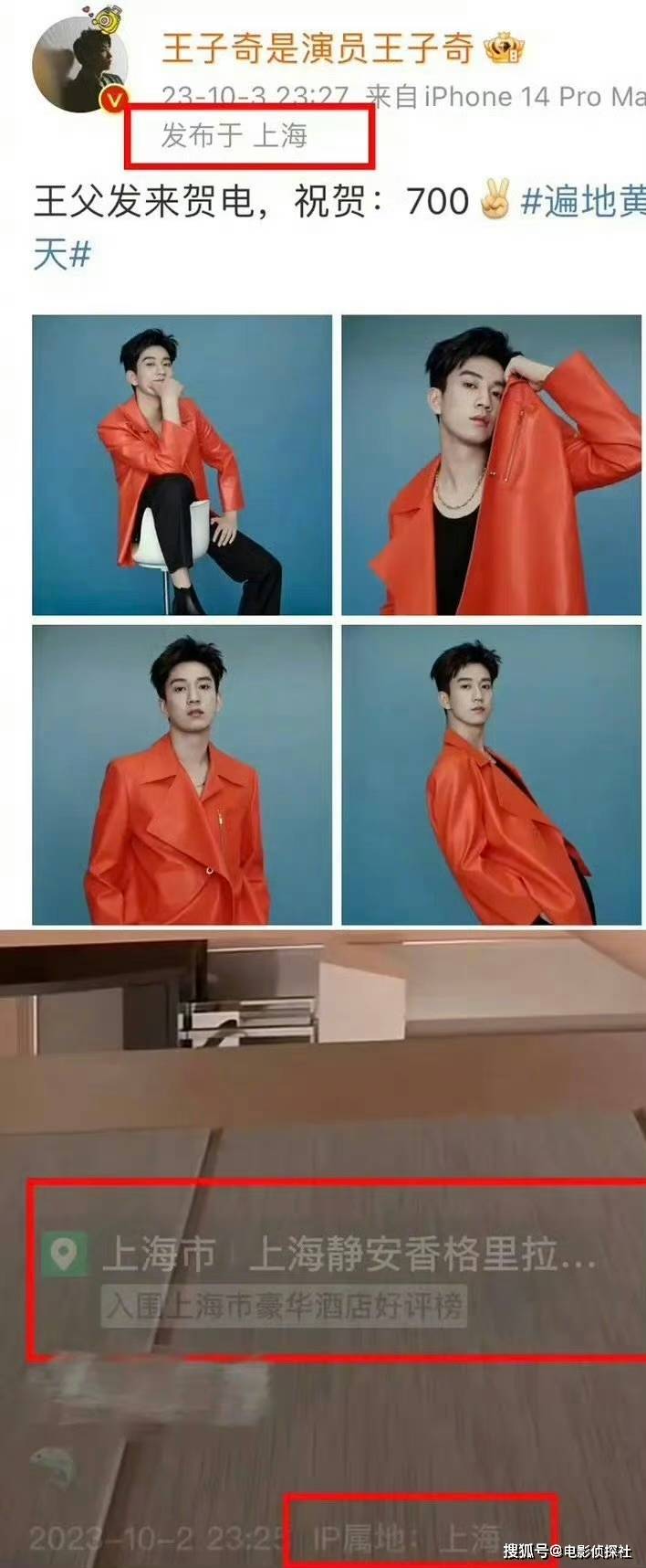 10월 3일에는 왕자기 배우가 상하이에서,
