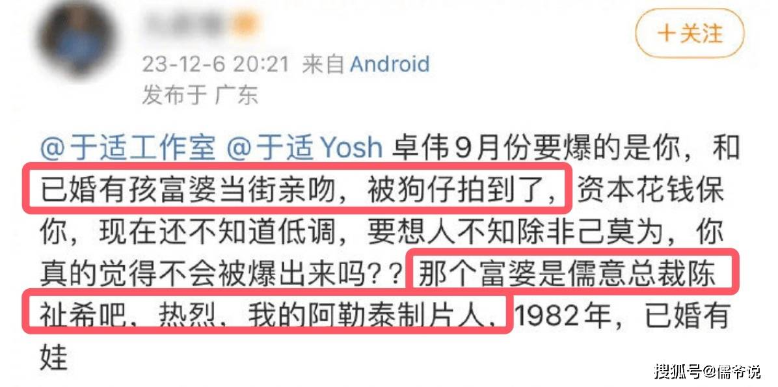그의 전 여자친구가 나서서 그가 현대의 천스메이(陈世美, 출세한 후 변심한 남편이나 애정이 식은 남자를 지칭)라고