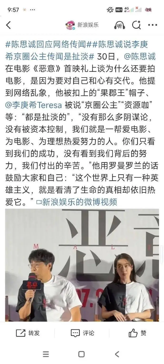 최근 새 영화 시사회 자리에서 '천쓰청 陈思诚' 감독이 "이경희 배우가 '베이징권 공주'라는 루머는 말도 안 되는 소리다"라고 언급을 했다고 하는데요~!