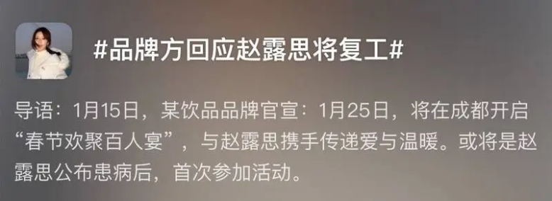 약 한 달간의 휴식 후, 1월 25일 청두에서 열리는 브랜드 행사에 참석하며 활동을 재개할 예정이라고 하고요.