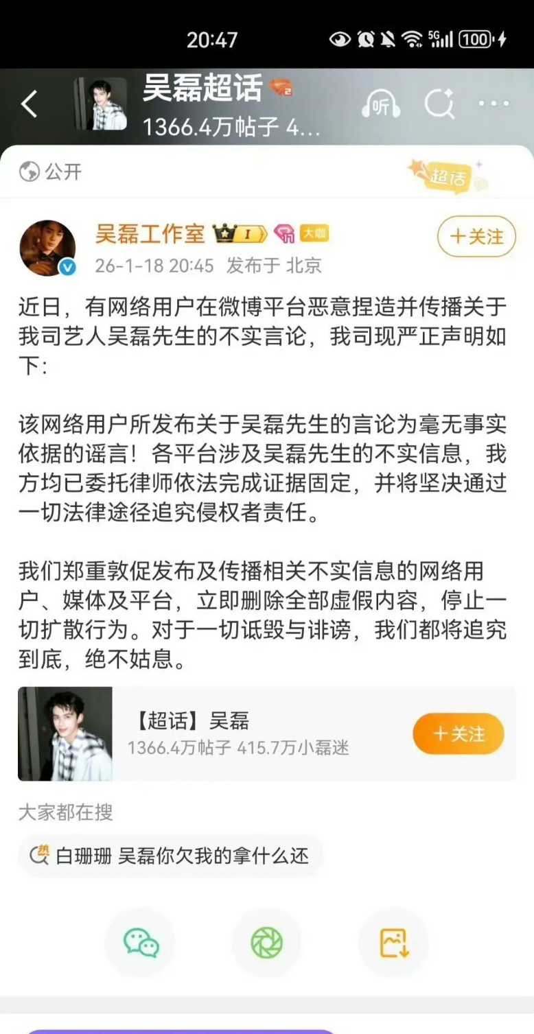사건이 확산된 뒤, 백산산의 계정은 곧 조용해졌고, 오뢰 스튜디오의 법적 대응은 계속 진행 중이라고 해요.