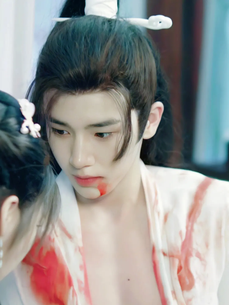 하이 포니테일 스타일의 헤어부터해서 소년미와 고풍스러운 이미지를 물씬 풍기면서 사극 의상을 입고 있는 그를 보자 하면 첫눈에 반하게 만들죠.