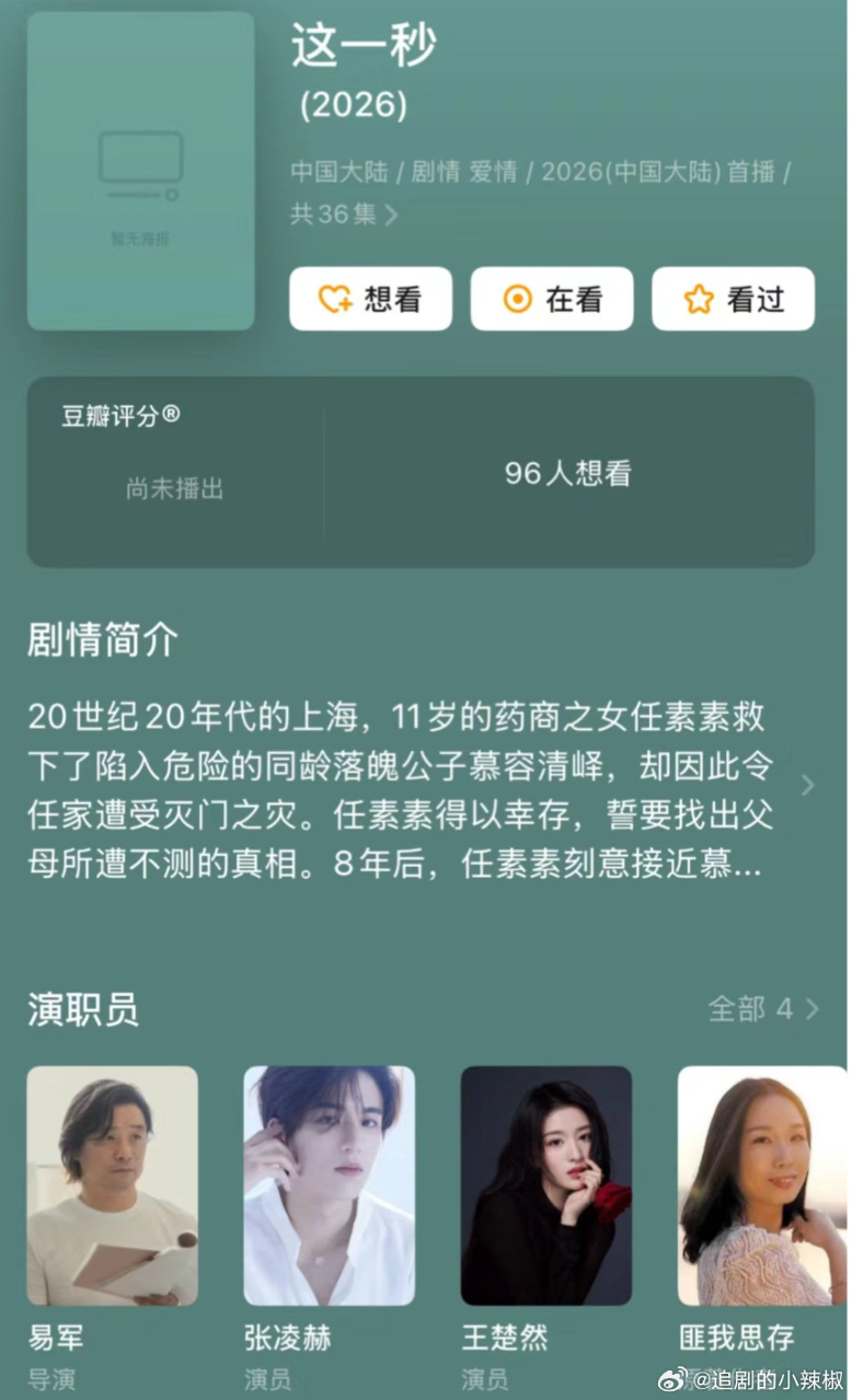 중화민국 시대의 새드 로맨스 드라마《저일초 这一秒》, 주연 배우 장릉혁 & 왕초연, 비주얼 파티!!