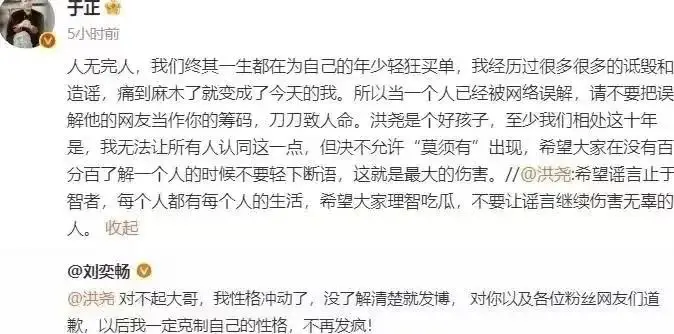 홍요 배우는 상황 파악이 되지도 않은 상태였는데, "중국 연예계 소식통인 우정 于妈 대표"가 바로 개입을 했는데요.