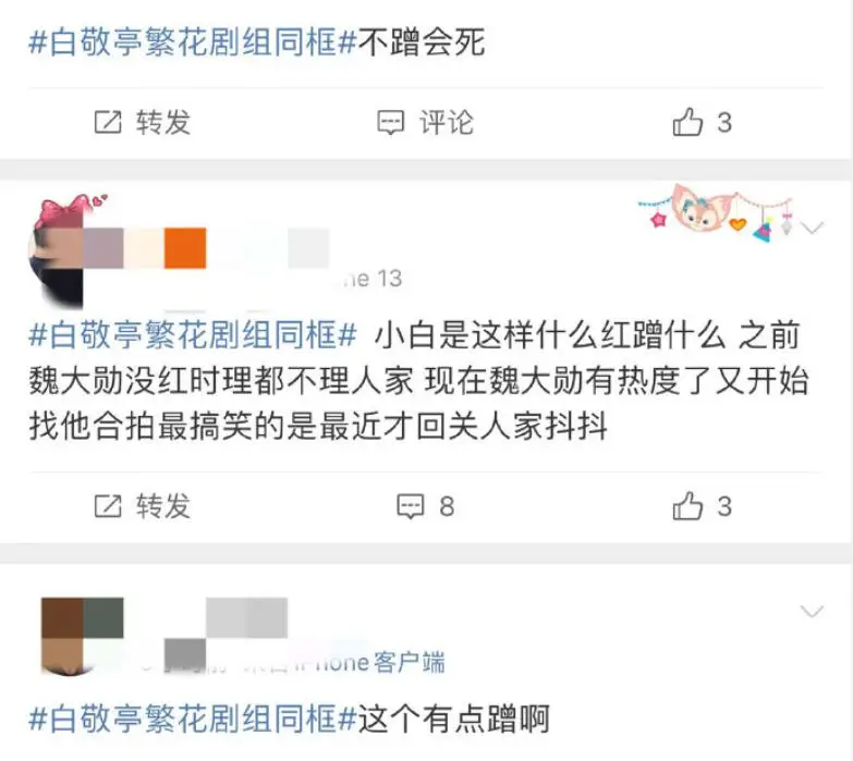 당시 일부 네티즌들은 백경정 배우가 예전에는 위대훈 배우와 놀지 않았는데 이후 위대훈 배우의 인기가 많아지면서