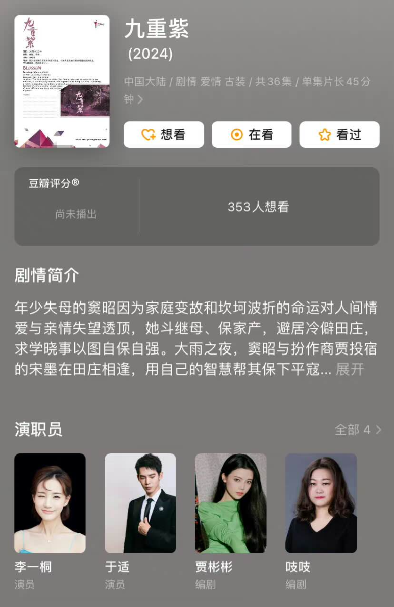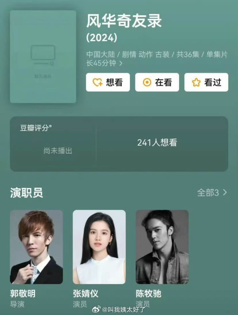 주연: 장정의 (张婧仪), 진목치 (陈牧驰)